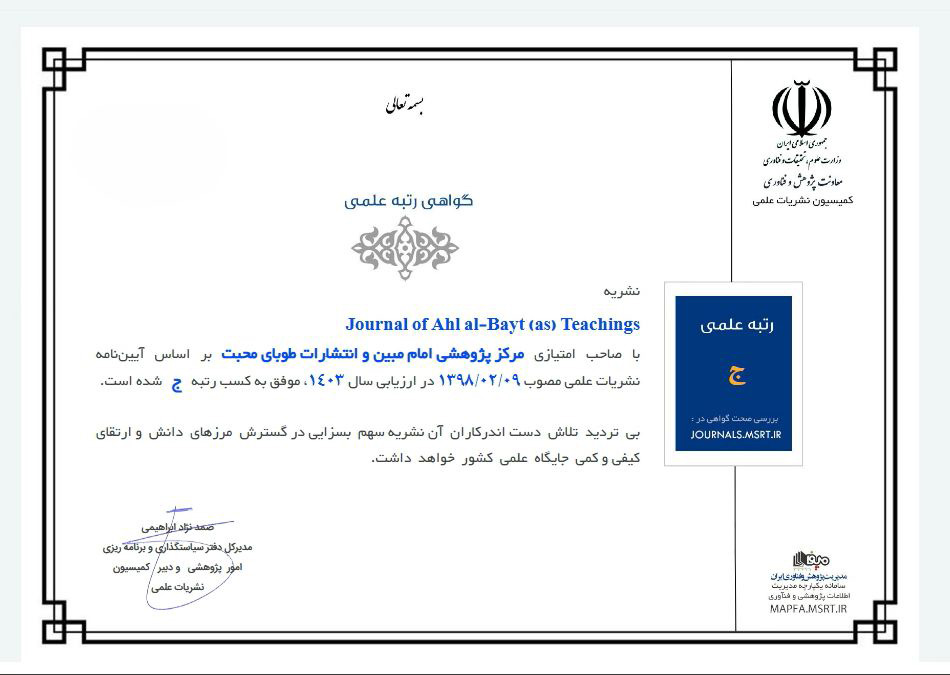 اخذ رتبه علمی پژوهشی مجله Journal of Ahl al-Bayt (as) Teachings از وزارت علوم، تحقیقات و فناوری با صاحب امتیازی مرکز پژوهشی امام مبین